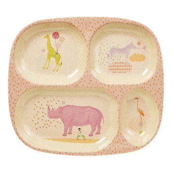 Suloinen ja erittäin kestävä lasten eläinkuvioinen melamiinilautanen neljällä lokerolla. Lautanen sopii kaikkiin ruokailuihin, esimerkiksi lounaalle, jälkiruoan syömiseen sekä välipalan naposteluun. Ei lasi- tai posliinimurskaa, jonka joutuisit keräämään lattialta. Tuote on hyväksytty elintarvikekäyttöön. Konepesun kestävä, ei sovi mikroaaltouunin käyttöön.