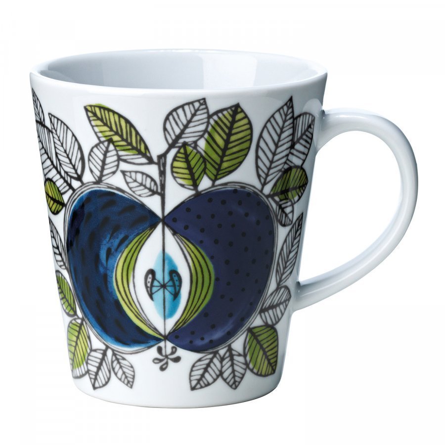 Eden muki Sigrid Richtersilta. Edenin kuvio on ruotsalainen designklassikko 1960-luvulta, jossa on tyylikäs retrotyyli. Eden-muki on valmistettu kestävästä maasälpäposliinista ja se kestää konepesun, mikron, pakastimen ja uunin jopa 250°C asti.