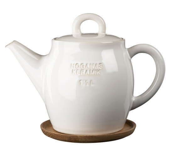 Keraaminen Höganäs-teekannu, jonka vetoisuus on 1,5 l. Kannun mukana tulee puusta valmistettu aluslautanen, joka estää pöytää likaantumasta ja metallista valmistettu siivilä. Yhdistä kannu saman sarjan mukeihin ja luo kauniita iltapäivätee kattauksia.
