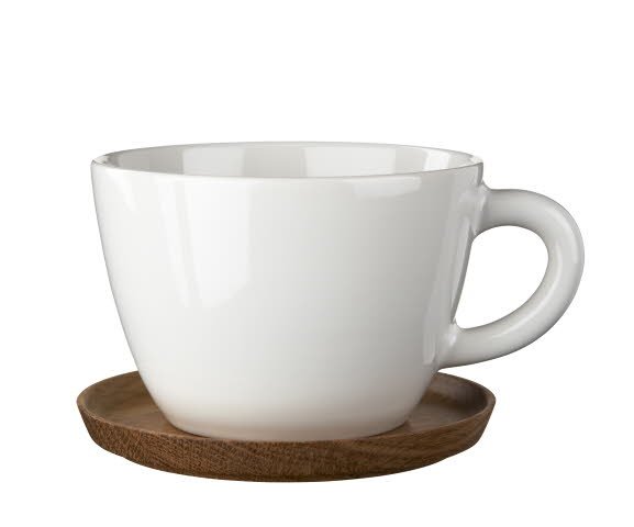 Posliinista valmistettu Höganäs-teemuki, jonka vetoisuus on 50 cl. Mukin mukana tulee puusta valmistettu aluslautanen, mikä estää pöytää likaantumasta ja se toimii myös mukin kantena. Vuonna 1909 suunniteltu muki on suunniteltu kestämään ja säilyttämään lämpöä.