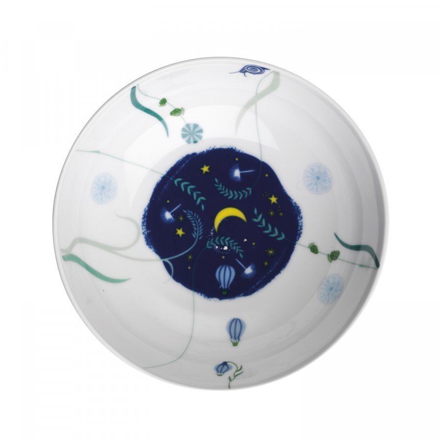My First Swedish Grace -sarjan Stjärnklart-kulho Rörstrandilta. Kaunis kattaus kuuluu ihan kaikille, myös perheen pienimmille. Kuvittaja Lina Ekstrandin My first Swedish Grace -mallisto päivittää miltei 90-vuotiaan klassikon vehnäpelloksi kasveineen ja as