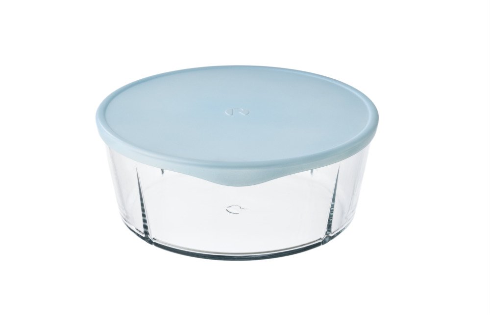Sininen muovikansi joka sopii Rosendahlin 24 cm halkaisijaltaan olevalle uunivuoalle. Kansi pitää ruoan tuoreena ja saat otettua tuoreet pullat mukaan kätevästi.