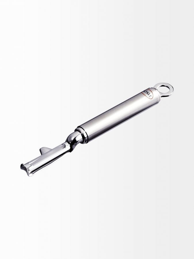 Ruostumattomasta teräksestä valmistettu kuorimaveitsi sopii oikeakätisille. Liikkuva terä vaihdettavissa. Konepesunkestävä.