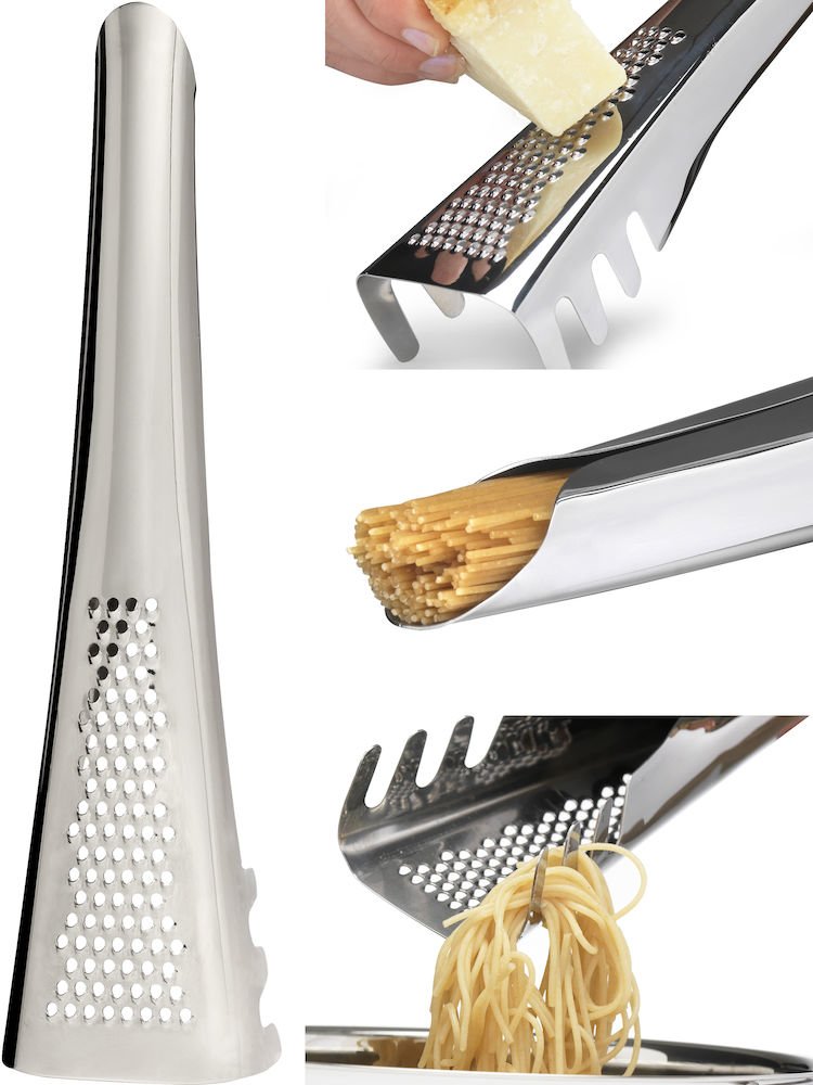 Monitoiminen pastakauha, jossa on mitta pasta-annoksille sekä raastin parmesaanille. Loistava tiskiä säästävä työväline.