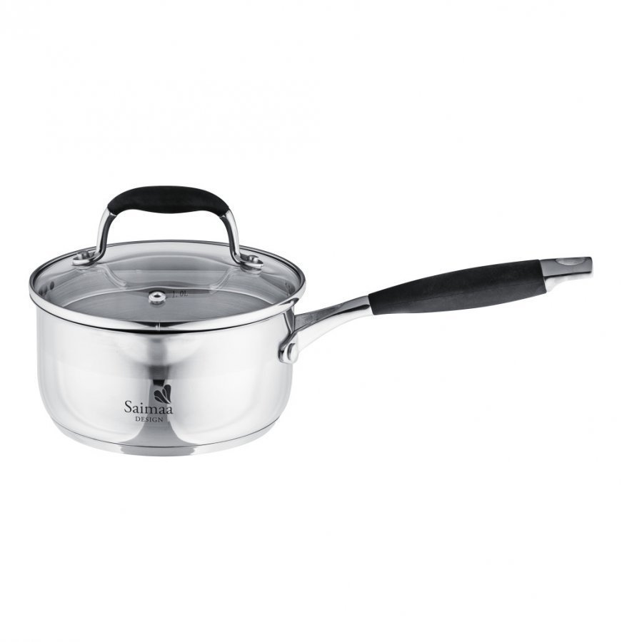 Ruostumatonta terästä, tilavuus 1,6 litraa. – Kolmikerrospohja-Konepesun kestävä – Silikonipäällysteiset kahvat- Lasikannessa höyryaukko ja kannessa kaaytosiivilä- Sisäpuolella mittataulukko. – Soveltuu kaikille liesille