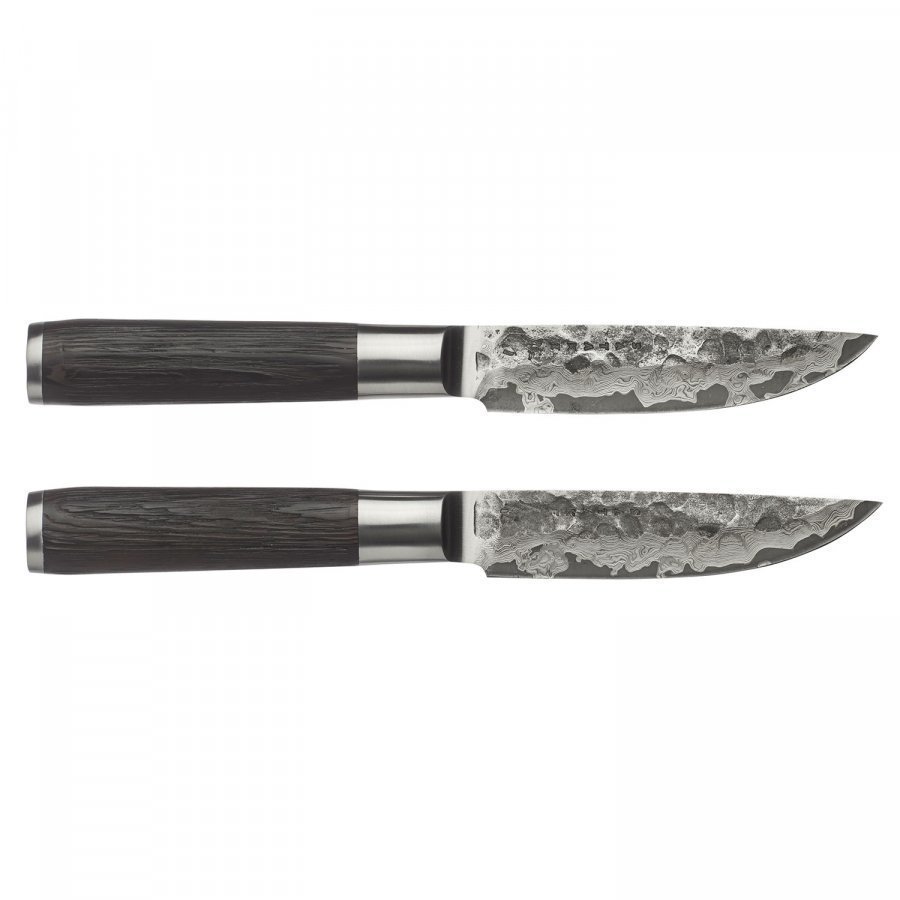 2-pakkaus teräviä lihaveitsiä, valmistettu teräksestä ja niissä on hieno kahva poltetusta wenge-puusta. Veitset toimitetaan kauniissa puulaatikossa.