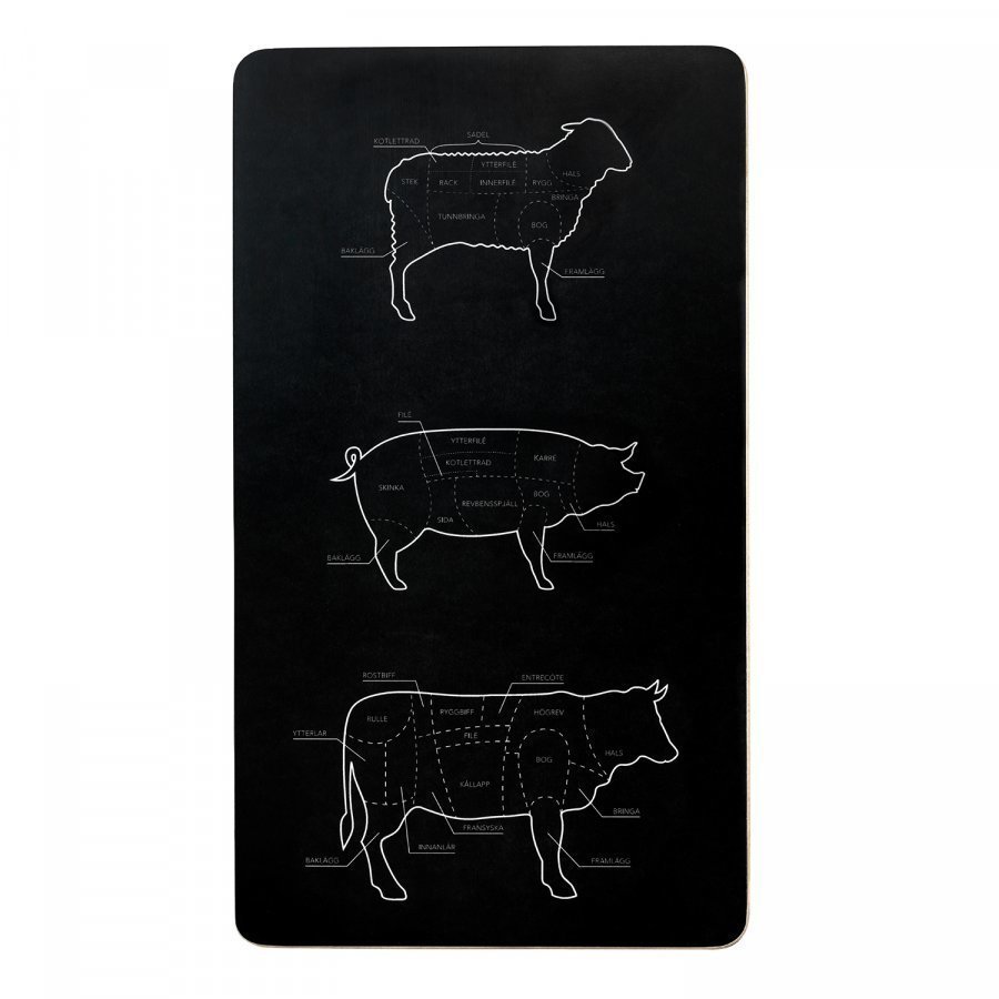 Leikkuulauta paloitteluosat merkiltä Scandinavian Design Factory. Mielenkiintoinen leikkuulauta, jossa on kuvattu tavallisimmat paloitteluosat lampaasta, siasta ja naudasta!