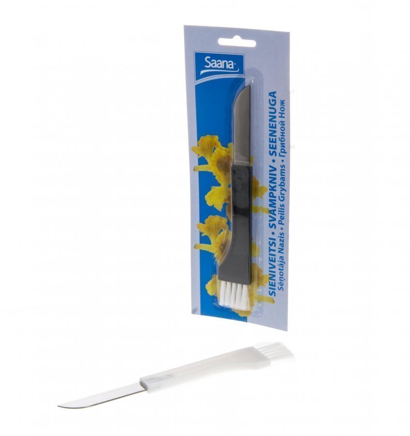 Sienien puhdistamiseen. Veitsi ja harja samassa. Musta tai valkoinen varsi.