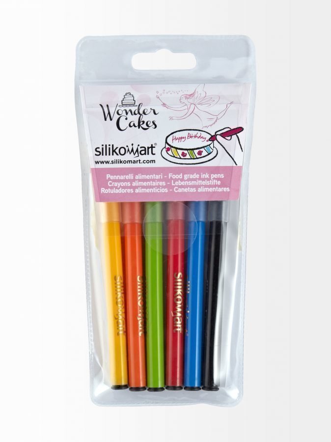 Pakkaus sisältää kuusi leipomusten koristeluun tarkoitettua kynää.
