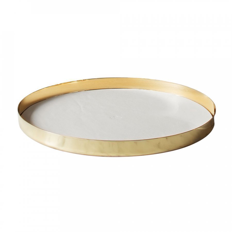 Skultuna Karui Tarjotin Ø34cm Norsunluunvalk Nahka / Messinki