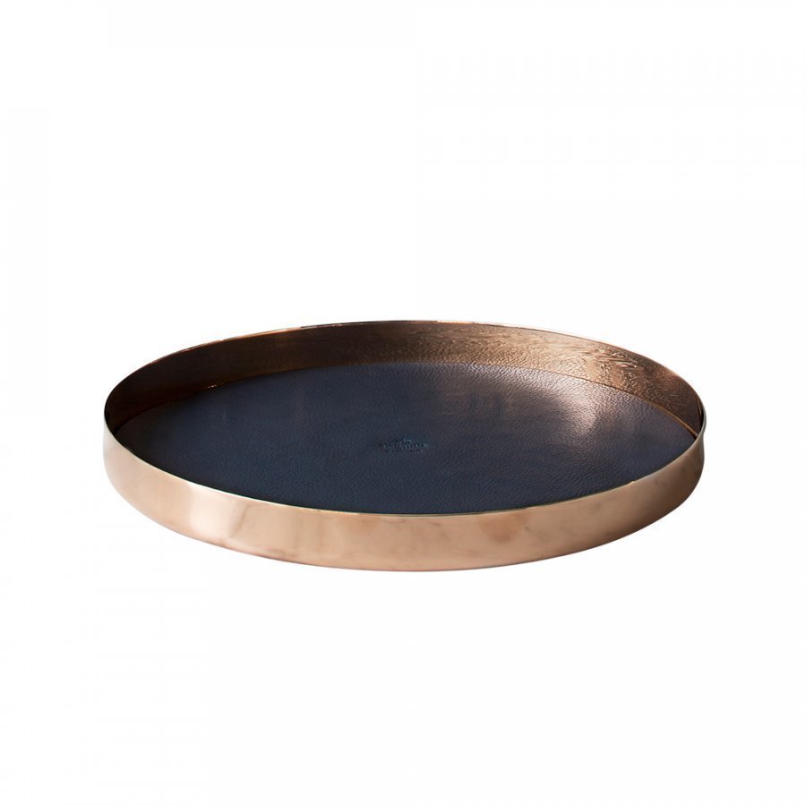 Skultuna Karui Tarjotin Sininen Nahka / Kupari Ø24 Cm