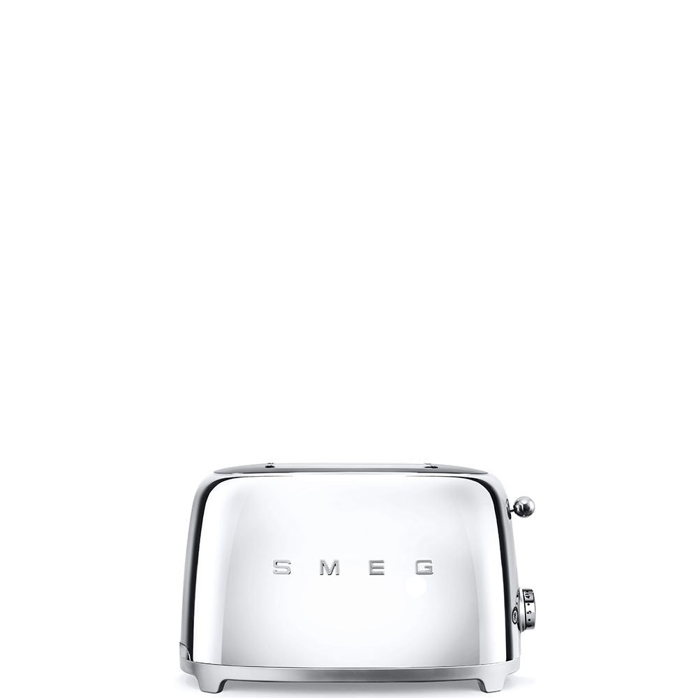 Smegin 50-luvulta inspiraationsa saanut leivänpaahdin kahdella leveällä 36 mm paahtolovella. Paahdin on valmistettu lakatusta ruostumattomasta teräksestä ja valaistu säätönuppi on krominen. Johto on 90 cm pitkä ja saat sen säilymään siististi paahtimen johtokelassa. Irrotettavan murualusen ansiosta paahdin on helppo pitää puhtaana ja kumitassut pitävät paahtimen tukevasti paikallaan. Toiminnot:. 6 asteetonta paahtolämpötilaa. Uudelleenlämmitystoiminto. Sulatustoiminto. Bagelitoiminto, joka paahtaa vain bagelin toisen puolen. Stop -nappi, jolla paahdon saa pysäytettyä. Teho: 950 W. Paahtoloven koko: korkeus 110 mm, pituus 147 mm, leveys 36 mm. Paahtimen ulkomitat: korkeus 198 mm, pituus 310 mm, leveys 195 mm.