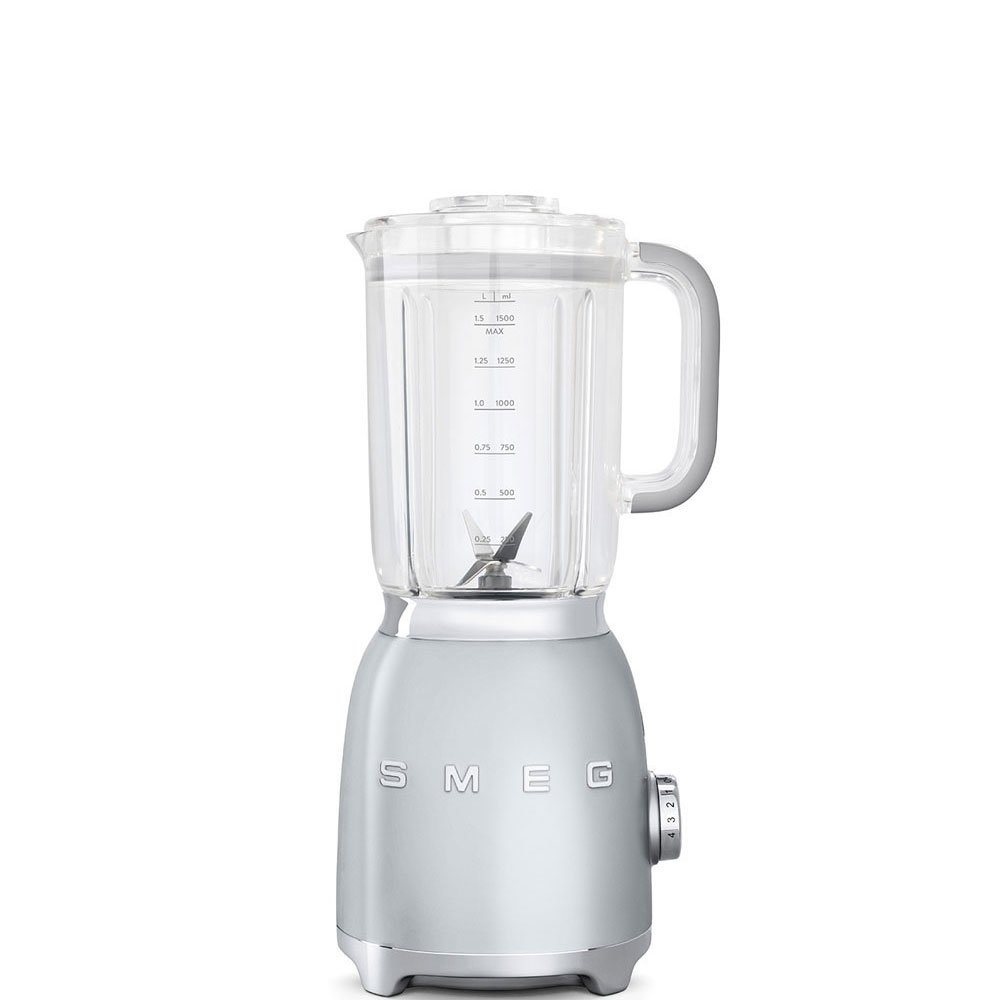Smeg on laajentanut 50-luvulta inspiraation saanutta kodinkonesarjaa tällä tyylikkäällä tehosekoittimella. Alumiinisella 800 watin tehosekoittimella saat tehtyä smoothiet, vihanneskeitot sekä murskattua jään viikonlopun coctaileihin helposti. Kannu on 1,5 litraa vetoisuudeltaan ja kannessa on 45 ml mitta. Kumitassut pitävät tehosekoittimen tukevasti paikallaan ja johdon saat siististi säilöttyä johtokelassa. . Toiminnot:. 4 nopeutta hitaammalla aloituksella (max 18 000 kierrosta minuutissa). Jäänmurskausohjelma. Smoothieohjelma. Pulssitoiminto. Tehosekoittimessa on sisäänrakennettu turvapysäytys, jos kannu on liian täynnä tai kun kannun nostaa tehosekoittimen rungosta. .