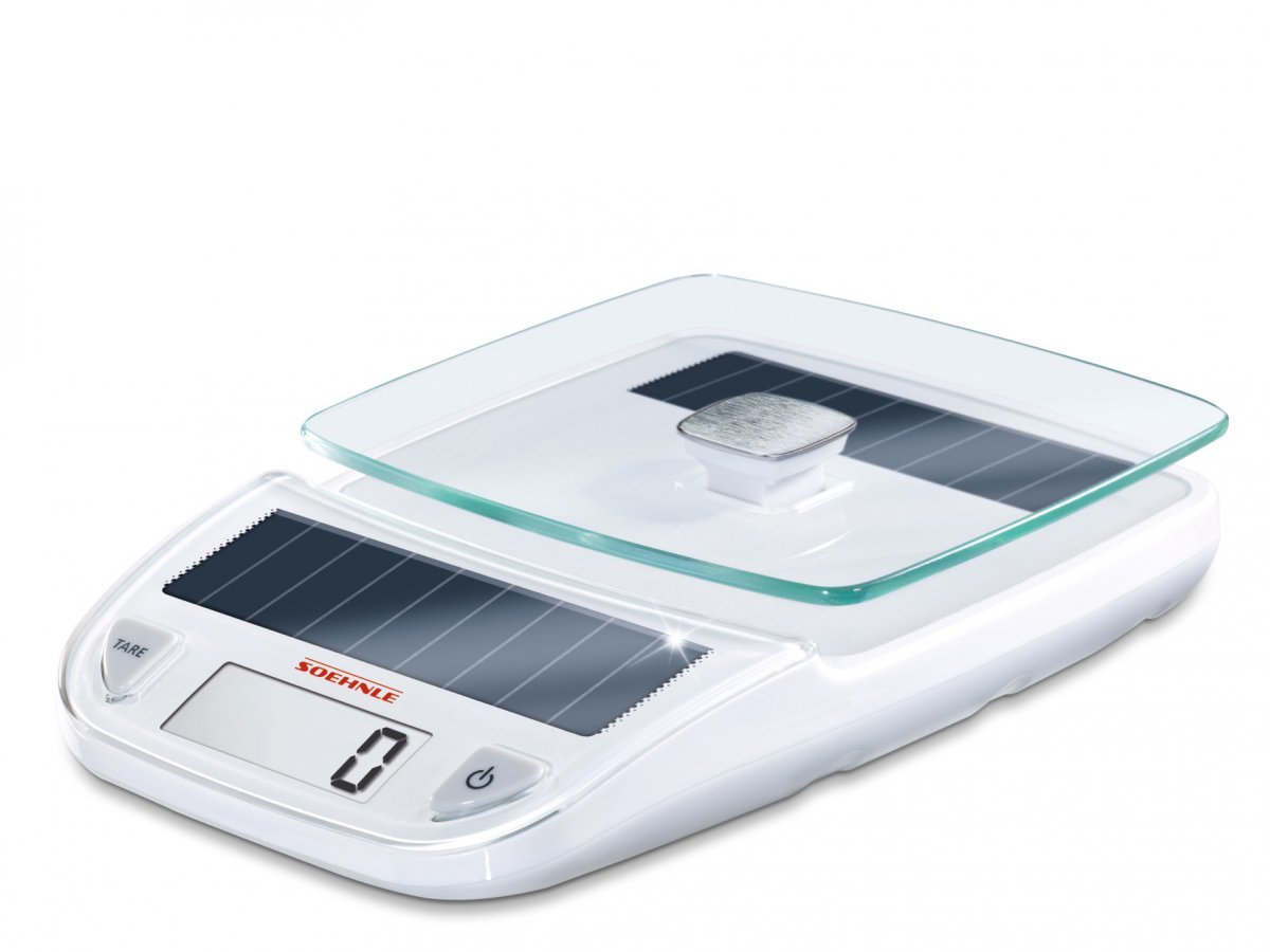 Auringon valolla toimiva vaaka, jolla voit punnita raaka-aineet yhden gramman intervallein. Vaaka toimii myös pienessä määrässä valoa ja se on helppo pitää puhtaana sillä vaa’an taso on irrotettava ja konepesun kestävä. Suuri näyttö on helppolukuinen.