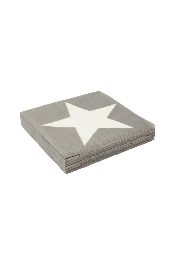 Lautasliinat, joissa iso tähti. Yksityiskohdat viimeistelevät kattauksen lounaalla, päivällisellä tai juhlissa. Materiaali: Paperia. Koko: 33×33 cm. Kuvaus: 3-kerroksiset paperilautasliinat, joissa painettu kuvio. 20/pakk. Vinkki: Yllätä vieraat – käytä hieman aikaa lautasliinojen taittelemiseen kauniisti. Helppoa ja näyttävää!