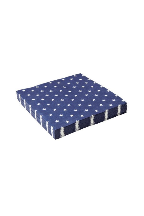 Lautasliinat, joissa sieviä tähtiä – kruunaavat lounas-, päivällis- tai juhlakattauksen. Materiaali: paperia. Koko: 33×33 cm. Kuvaus: 3-kerroksiset paperilautasliinat, 20/pakk. Painettu kuvio. Vinkki: Yllätä vieraat iloisesti taittelemalla lautasliinat taidokkaasti. Se on helpompaa kuin moni luulee!