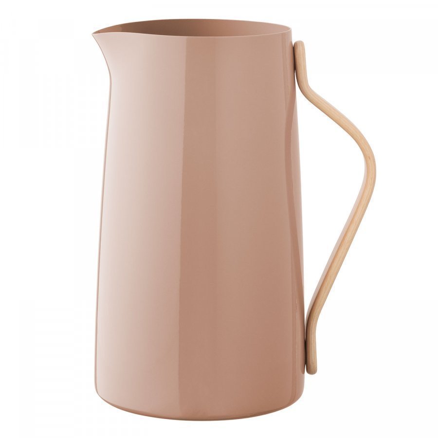 Emma-sarja somistaa arkea kevyellä retro-twistillä, jossa on nykyaikainen muotokieli modernilla tulkinnalla, joka kohtaa uusia materiaaliyhdistelmiä. Kannu on valmistettu ruostumattomasta teräksestä kahvalla lakatusta pyökistä, vieden ajatukset 1950-luvun klassisiin teräskannuihin.