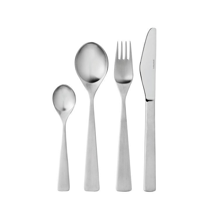 Maya 2000 aterimet, Stelton. Muotoilijana Tias Eckhoff. Yksinkertainen sekä ajaton aterinsarja korkealuokkaisesta, ruostumattomasta teräksestä. Soveltuu niin arkeen kuin juhlaan. Erittäin mukava muotoilu ja istuu täydellisesti käteen.