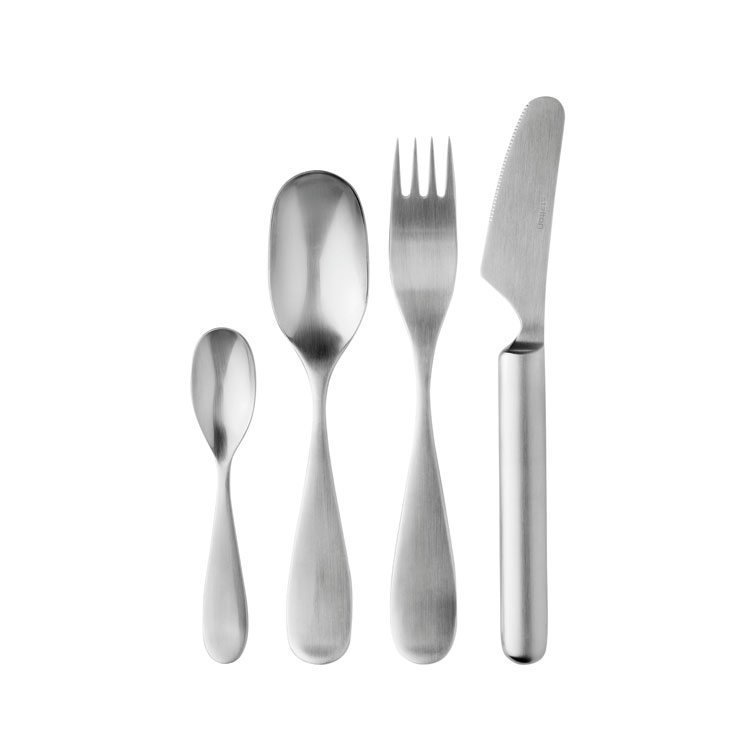 Una aterimet, Stelton. Muotoilijana Tias Eckhoff. Yksinkertaisen sekä modernin muotoilun omaava aterinsarja. Valmistettu ruostumattomasta teräksestä ja omaa erittäin miellyttävän muotoilun.