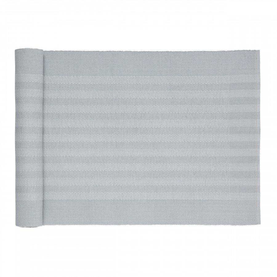 Kudottu kaitaliina raitakuviolla. Koristeellinen ja käytännöllinen samalla kun suojaa pöytää. Konepesu 40 asteessa.