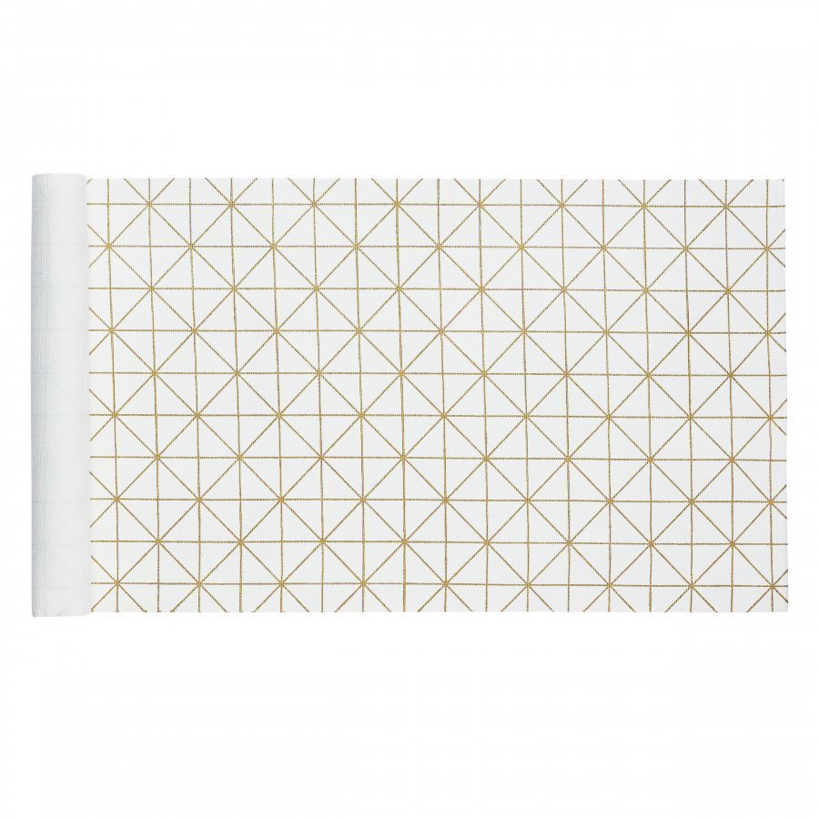 Kaitaliina, jossa on graafinen painokuvio. Suojaava ja koristeellinen. Konepesu 40 asteessa.