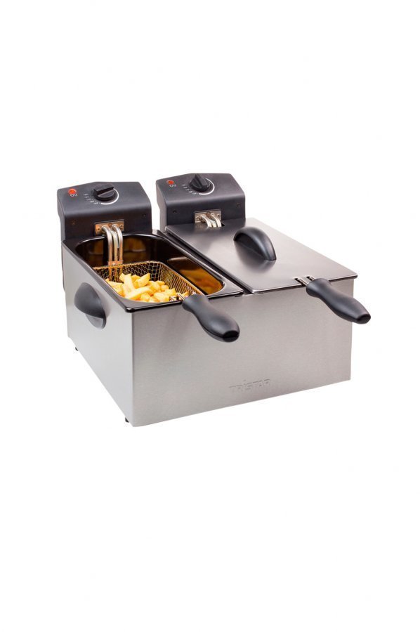 Friteerauskeitin, jossa on kaksi (2x3L) keitintä. Voit valmistaa samanaikaisesti ranskalaisia ja muuta ruokaa. Kahden termostaatin ansiosta keittimiä voi käyttää erikseen. Ihanteellinen isolle perheelle! – Sisältö: 2 x 3.0 L – Säädettävä termostaatti – Kaksi termostaattia – Helppo irrottaa ja puhdistaa – Emaloitu sisäkulho – Analoginen ohjauspaneeli – Friteerauskorissa irrotettava kahva – Astianpesukoneen kestävät osat – Viileä kuori – Virran osoitinvalo – Paikka johdolle – Teho: 2 x 1800 W