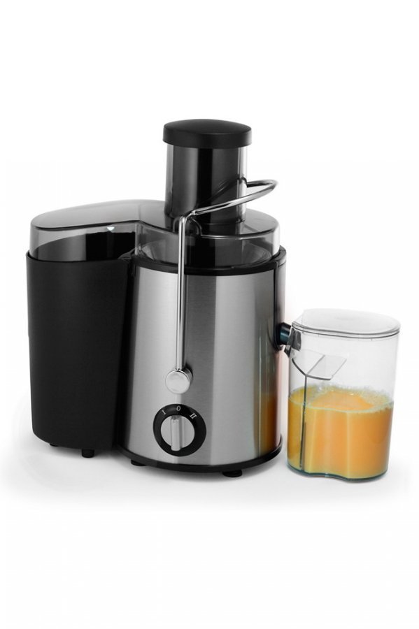 Mehulinko, jonka suodatin ja terä ruostumatonta terästä. Tippalukkotoiminto, turvavirrankatkaisu, hedelmälihasäiliö (1,5 L) ja mehusäiliö (0,75 l), jossa kaatonokka. 2 nopeutta ja syketoiminto. – Ruostumaton kuori – 2 nopeusasetusta – Voidaan täydentää jatkuvasti – Mehusäiliö 0,75 l – Hedelmälihasäiliö 1,5 l – Helppo irrottaa puhdistusta varten – Lukittava turvakatkaisimen/mekanismin avulla – Tippalukkotoiminto – Läpinäkyvä kansi – Irrotettava suodatin – Suodatin ruostumatonta teräsverkkoa – Paikka johdolle – Teho 400 W