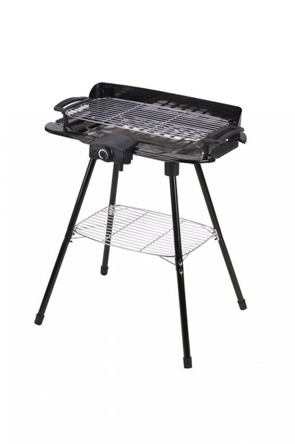 Monitoiminen sähkögrilli, jota voidaan käyttää niin pöytägrillinä kuin 4-jalkaisella jalustallakin. Kromattu ritilä (45,5 cm x 23 cm), jossa eri korkeuksia. Grillissä on termostaatti ja rasvankeräysastia. – Emaloitu kuori – Paistopinta 45 x22 cm – Grillilautanen – Voidaan purkaa osiin – Voidaan käyttää myös pöytägrillinä – Portaaton lämmönsäätö – Tuulisuoja – Säädettävät korkeudet – Rasvankeräysastia – Säädettävä termostaatti – Luistamattomat jalat – Kiinteät kahvat – Virran merkkivalot – Teho 2000 W