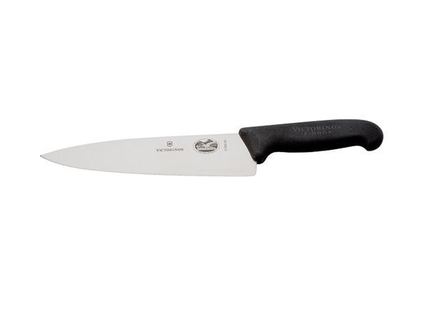 Erälehden palkitsema Victorinox kokkiveitsi on varustettu erikoisleveällä terällä ja on omiaan suorien ja kauniiden leikkauspintojen leikkaamiseen.