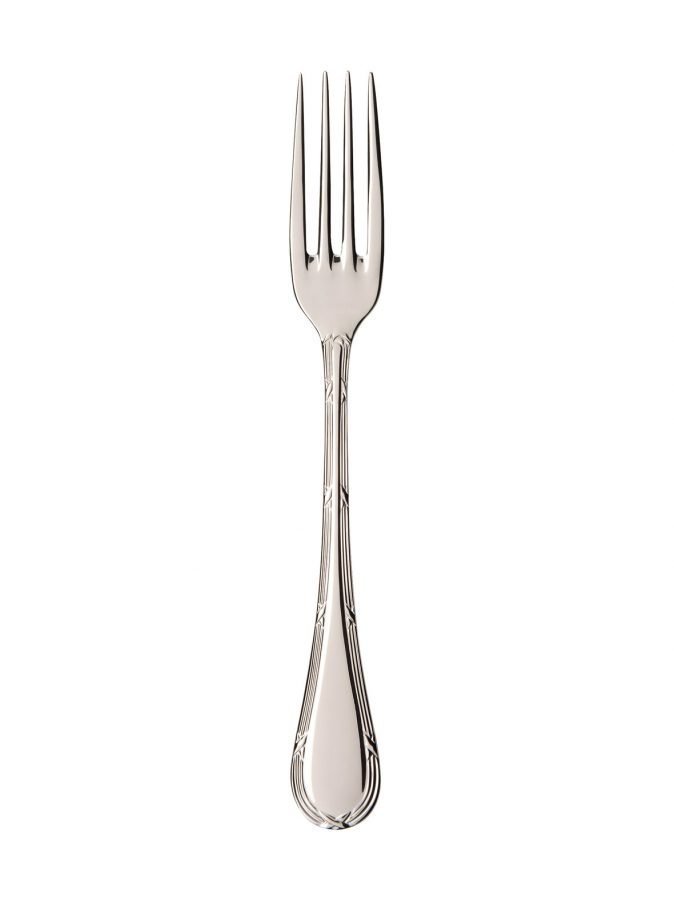 Aistikkaan ja empire-tyylisen Kreuzband Septfontaines -aterinsarjan aterimet on valmistettu ruostumattomasta ja konepesun kestävästä teräksestä. Jälkiruokahaarukan pituus on 185 mm.