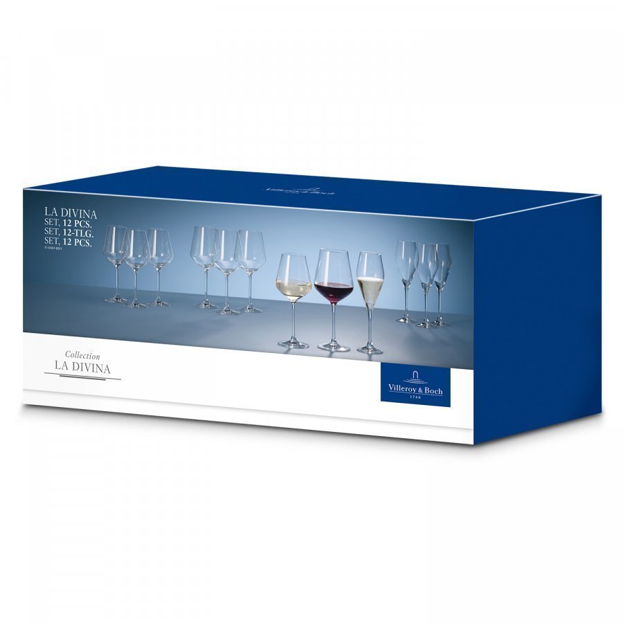4x valkoviinilasi 38cl, 4x punaviinilasi 47cl & 4x samppanjalasi 26cl. Konepesun kestävä.