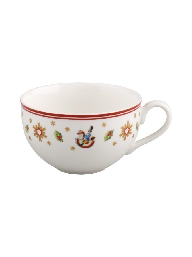 Ihastuttava, jouluaiheinen kahvikuppi on materiaaliltaan posliinia.