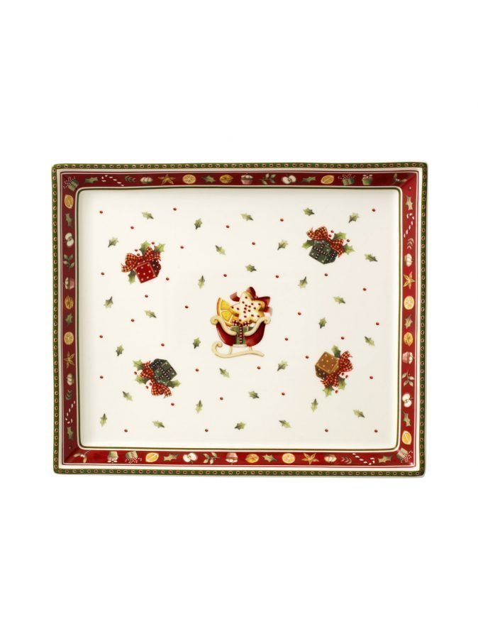 Jouluaiheinen kakkulautanen on posliinia.