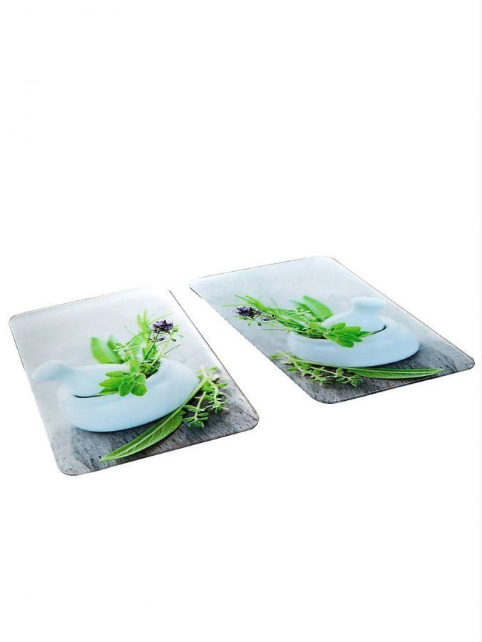 Liedensuojalevy ’Yrttitarha’, 2/pakkaus. Luotettava suoja, joka sopii sähkö- ja kaasuliedellä tai keraamisella liedellä käytettäväksi levyn säädettävien jalkojen ansiosta. Levyn naarmuuntumaton ja huokoseton pinta on erittäin hygieeninen. Levyjä voidaan käyttää myös suurikokoisena leikkuulautana, tarjoilualustana tai leivontaan (taikinan vaivaamiseen ja kaulintaan). Materiaali lasia. Iskunkestävä ja näin käytännössä rikkoontumaton. Kummankin levyn mitat (P x L x K) n. 52 x 30 1,8-4,5 cm.