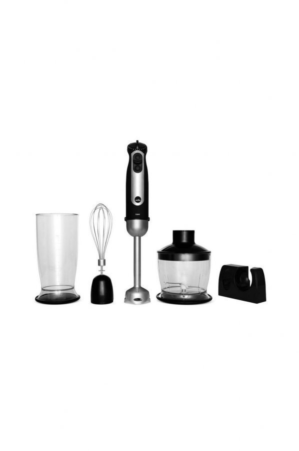 Sauvasekoitin, jossa mukana tarvikkeita: pallovatkain, kulho sekä kulhollinen minisilppuri. Erittäin tehokas, teho 700 W. Portaaton nopeus. Ergonomisesta kumipinnoitetusta kahvasta saa hyvän otteen.
