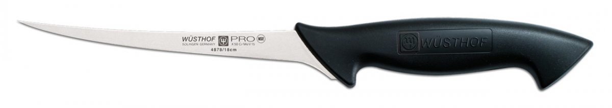 Wüsthof Pro fileeveitsi on korkealaatuinen ja oivallinen kalan fileeraukseen tai ohuiden sashimisiivujen viipalointiin sen ohuen ja taipuisan terän ansiosta. Pro –sarja on ammattikokkien suunnittelema korkea laatu mielessä pitäen. Ergonominen kahva on muotoiltu juuri käteen sopivaksi ja kestävästä ruostumattomasta teräksestä valmistetut veitset kestävät pitkään.