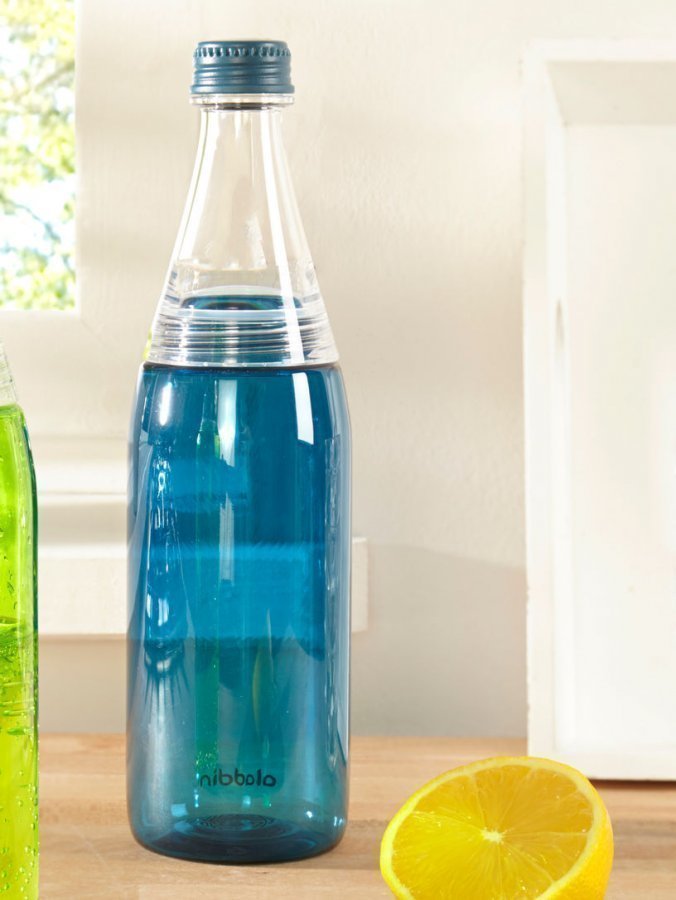 Bistro to go -juomapullo, 0,7 l. Voidaan avata myös kiertämällä pullonkaula irti, jolloin juomaan on helppo lisätä esimerkiksi sitruunaviipaleita tai mintunlehtiä. Tiivis pullo ei vuoda, ja siihen voidaan laittaa myös hiilihappopitoisia juomia. Pullo ei tahriinnu tai ime hajuja. Materiaali on kulutuksenkestävää Eastman Tritan -muovia. Helppo puhdistaa. Kestää pesun astianpesukoneessa.