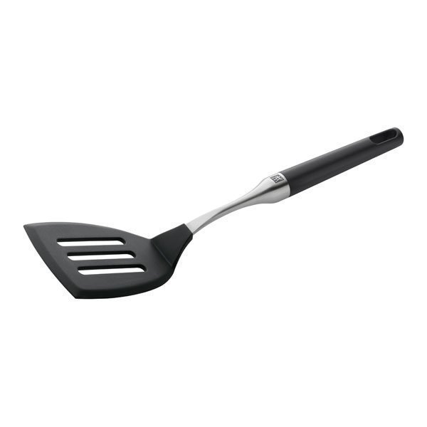 Valmistettu helppohoitoisesta materiaalista joka on täysin saumaton parhaan hygienian kannalta. Kevyt synteettinen kahva non-slip pinnoituksella. 18/10 ruostumaton teräs, musta ABS. Kestää konepesun.